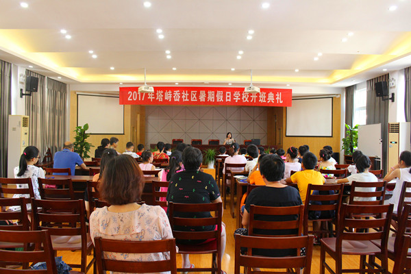 7月5日上午,塔峙岙社区暑期假日学校正式开课了,社区公共服务中心主任董春燕主持了此次开班典礼, 30多名小学员们在家长的陪同下首次“入驻”社区课堂,开启一个月的暑期活动。我院暑期三下乡大学生志愿者参加了本次开学典礼。