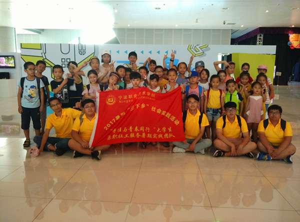 2017年7月20日,凤凰社区为假日学校的小朋友们组织了一场宁波科技馆一日游。由凤凰社区活动策划人王芳老师和宁波职业技术学院海天学院“责任与青春同行”大学生兼职社工服务实践团队的志愿者老师们带领25名报名的假日学校的小朋友前往科技馆。