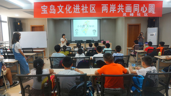 为了增加台湾大学生与祖国大陆的感情,于7月20日下午2:30,灵峰社区邀请了来自台湾的八名大学生为假日学校的孩子们上课,并且开展了一次台湾大学生与宁职院海天学院大学生志愿者的深入交流。