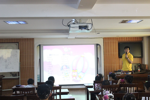担任今天老师的是应用韩语3160的赵泽敏,而且今天也是本次活动的第二节韩语课。课程开始前,队员先和小朋友简单复习了上节课的韩语拼写内容以及数字,随后今天的课程也正式开始。首先是韩国的地理位置以及文化还有韩国有名的美食。比起直接教韩语,小朋友们似乎更喜欢去了解一个国家的文化以及相关知识,对于韩国的文化美食,他们都表现出了非非常浓厚的兴趣。再简单了解之后,队员便开始教一些日常用语,但由于时间关系,并没有教特别的内容。在最后的一首《牛奶歌》后,今天的课程就到此结束了。