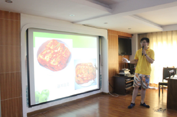 图为:课堂上正在介绍韩国美食