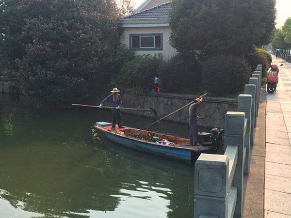 图为:河道清洁员工作现场