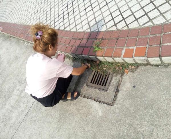 (工商管理学院米娜老师正在进行杂草清理工作)
