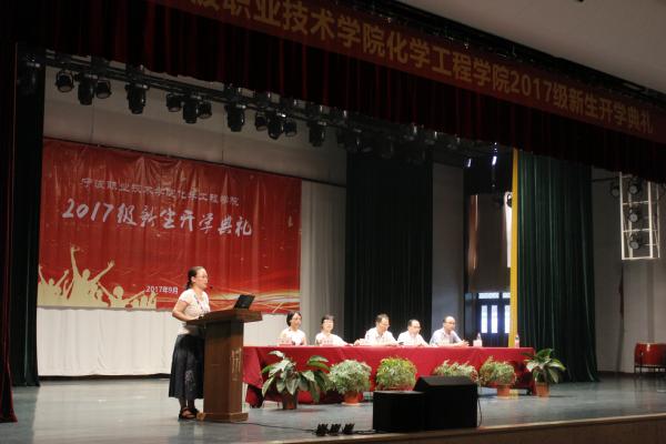 三年制化工、生物,二年制分析专场的开学典礼在师生的共同瞩目下准时开始。首先由宁波职业技术学院化学工程学院院长陈亚东老师为新生致欢迎词,他对新生的到来表示喜悦,对在座学生该如何充实地度过大学三年提出了自己的建议,陈亚东老师的演讲赢得了学生们热烈的掌声。同一时间,在四年制本科班的开学典礼现场,专业主任史海波老师正在分享2016级四年制学生的阶段性培养成果,四年制本科班试点在我校的成功开设象征着这一大胆尝试是正确的,是符合现代教育发展的,在未来还将大力培养化工实用型人才。而在我院有丰富学生工作经验的党总支书记徐帆老师则向新生聊起了家常,谈到新生对新环境的适应,如何维护寝室关系的和睦,怎样追求自身的发展等多个方面,这些看似平常的琐事却恰恰能打动新生的内心。最后,何彦文同学作为2016级四年制学生代表上台进行了发言,她鼓励新生在学习之余多参加活动,争做德智体美劳共同发展的新大学生。