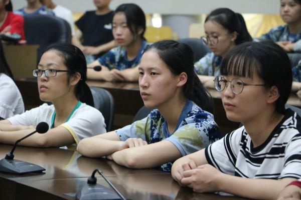 (图为:17级四年制本科新生正认真听着优秀学生代表讲话)
