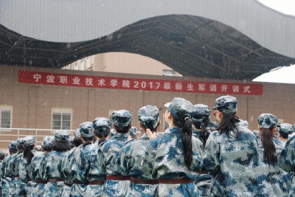 (图为:宁波职业技术学院2017级新生军训开训式)